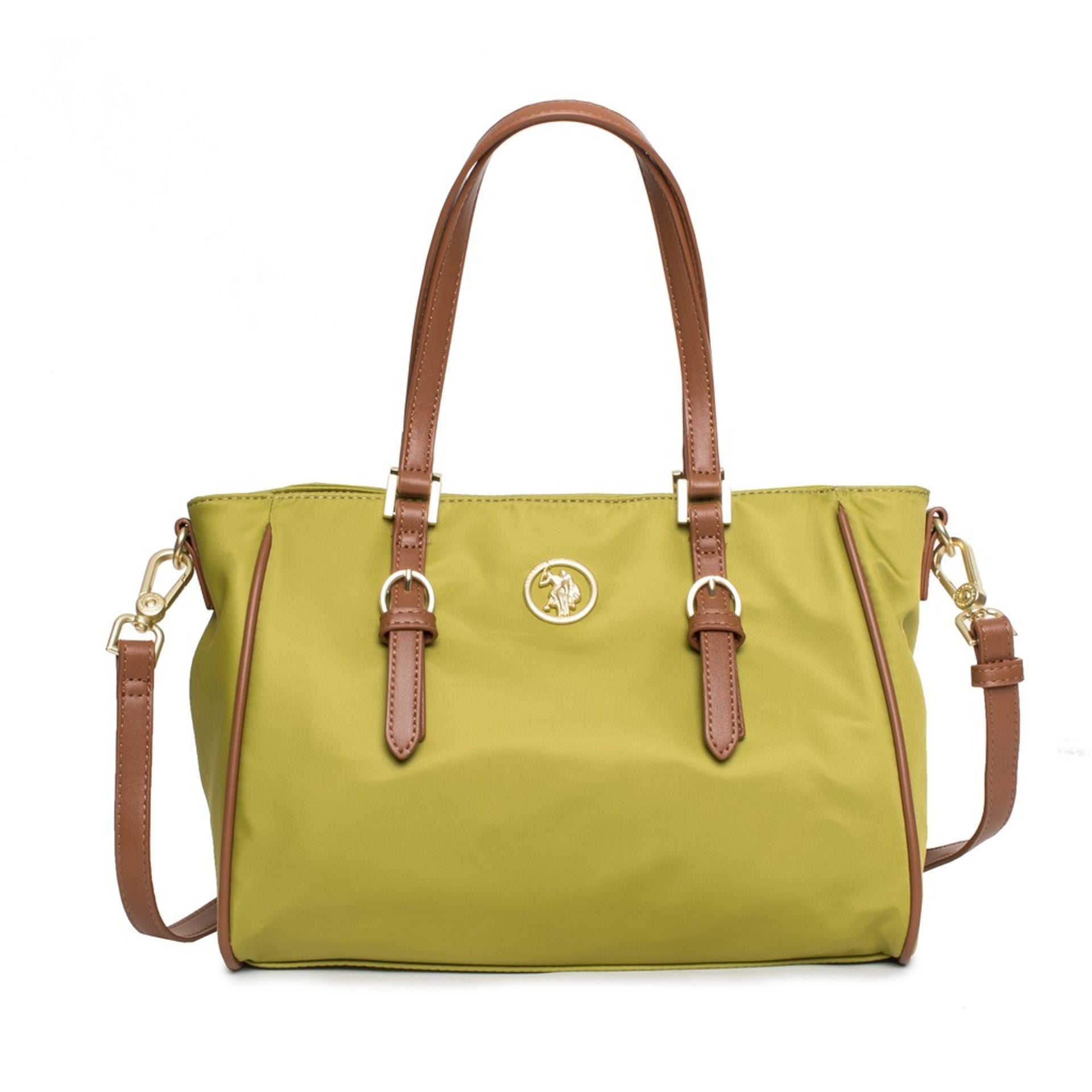 Sac à main cabas élégant U.S. Polo Assn en toile jaune avec anses en cuir marron – Style et praticité au quotidien