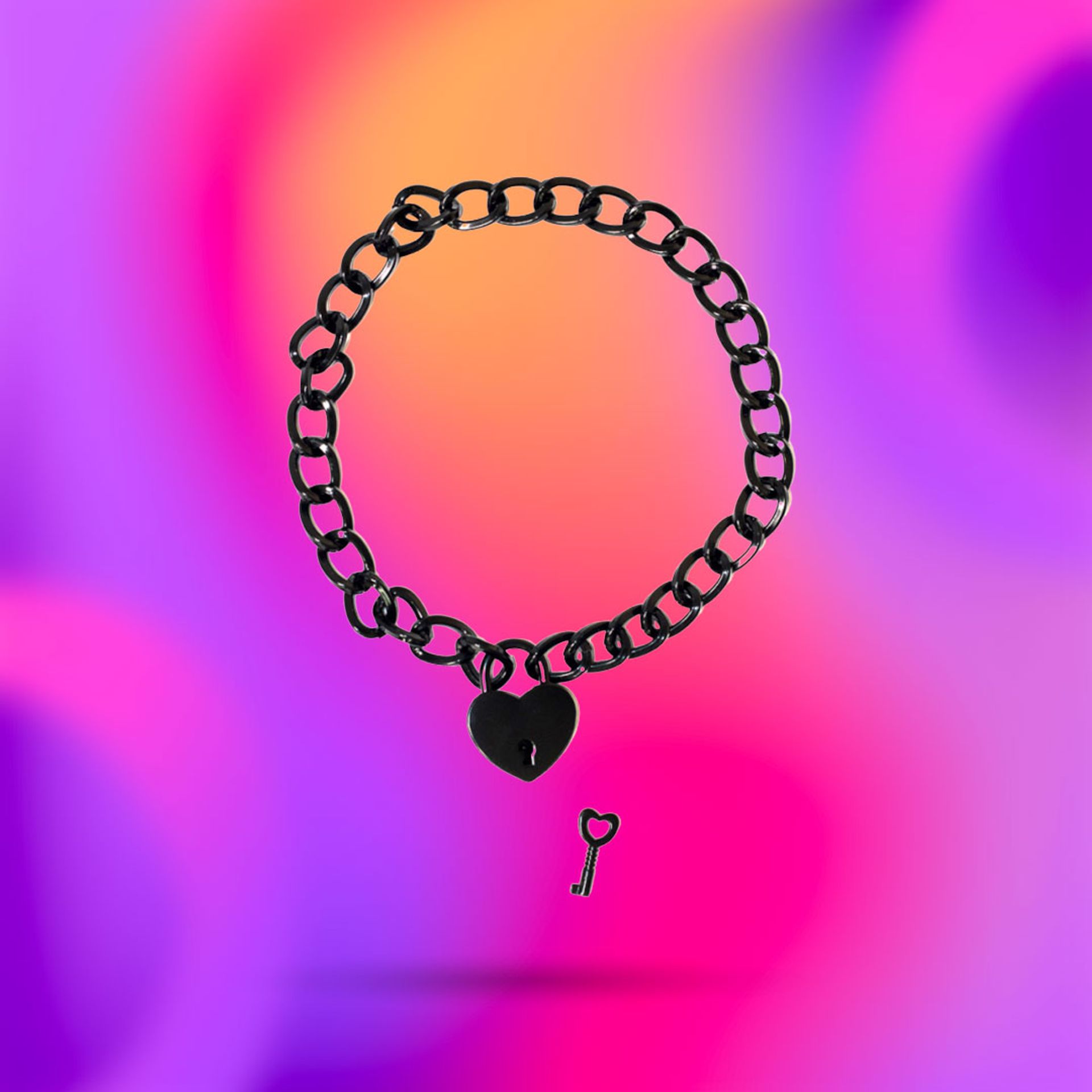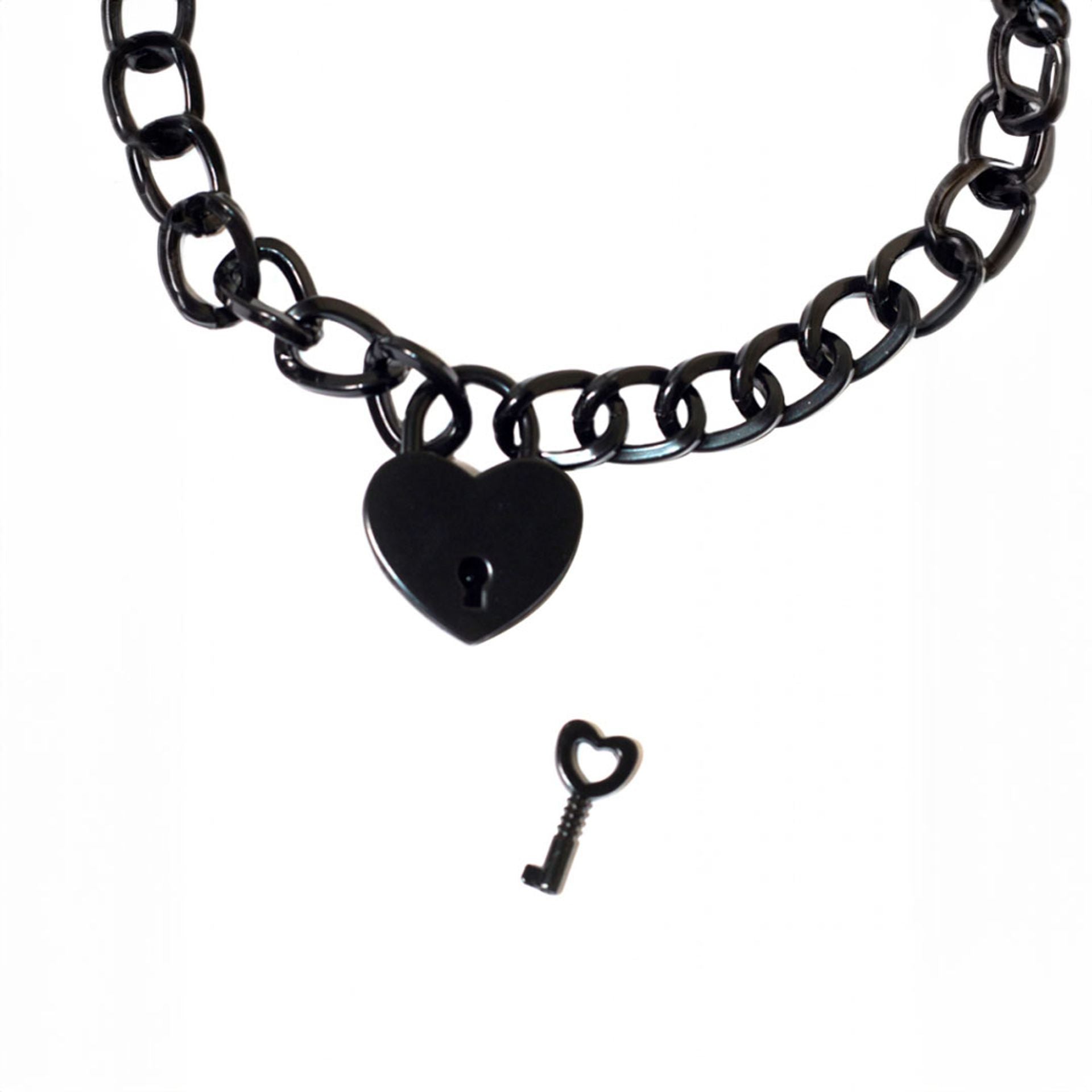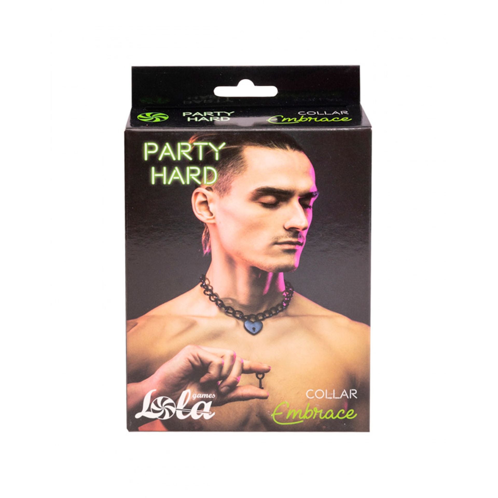 Collier sans laisse de la collection Party Hard. Il est en métal et possède un cadenas en forme de cœur avec une clé. La longueur totale du collier est de 42 cm. Convient à toutes les tailles. Fabriqué en couleur argent.